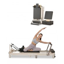 VEVOR Foldable Pilates Reformer, Wooden Pilates Workout Machine for Home Gym Studio Use, Pilates Bed with Dual Resistance- Spring & Cord, Reformer Set with Sitting Box, Up to 400 LBS