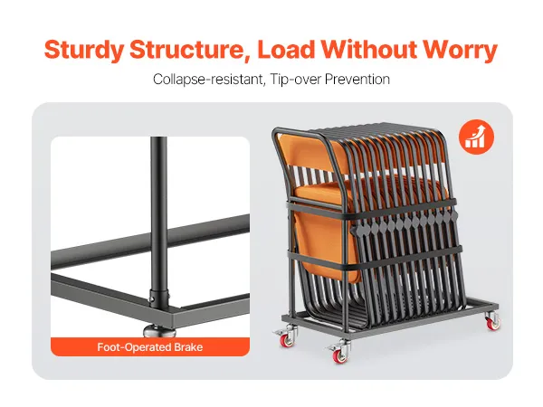 Rozměry produktu: Náš skládací vozík na židli měří 107 cm na délku, 53 cm na šířku a 107 cm na výšku, takže má maximální nosnost 136 kg. To umožňuje uskladnění až 25 židlí (Poznámka: Nezahrnuje skládací židle), což poskytuje flexibilitu a pohodlí, šetří místo.