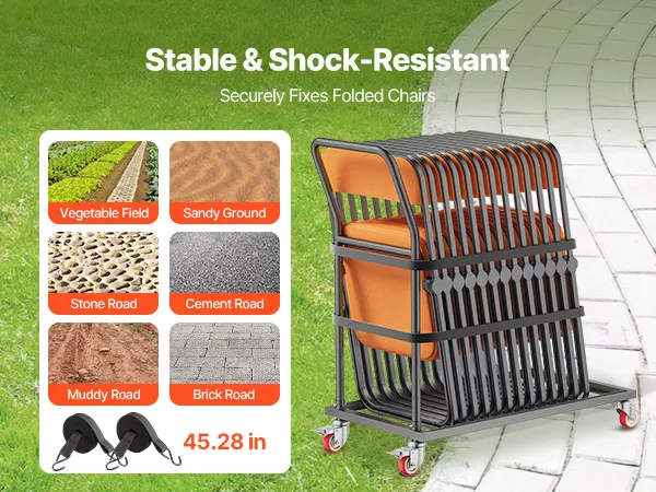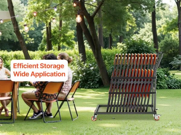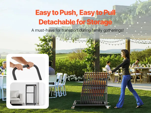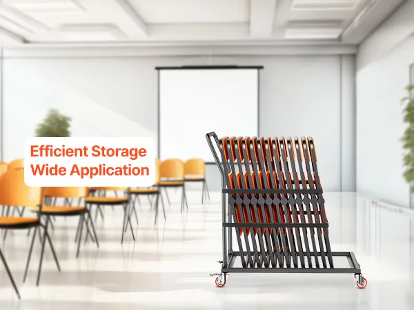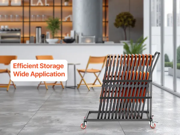 Všestranné využití: Multifunkční skládací stojan na židle je nepostradatelným nástrojem pro kostely, komunitní centra, školy, zábavní zařízení, školicí a konferenční místnosti. Bez námahy usnadňuje přesun, uspořádání a skladování jídelních židlí a pomáhá vám ušetřit drahocenný čas a energii.