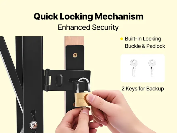 Easy Locking & Installation: The barricaded door includes a padlock hasp for locking. The kit provides a separate padlock with keys for the hasp. Installation tools are included for easy setup and reliable use.