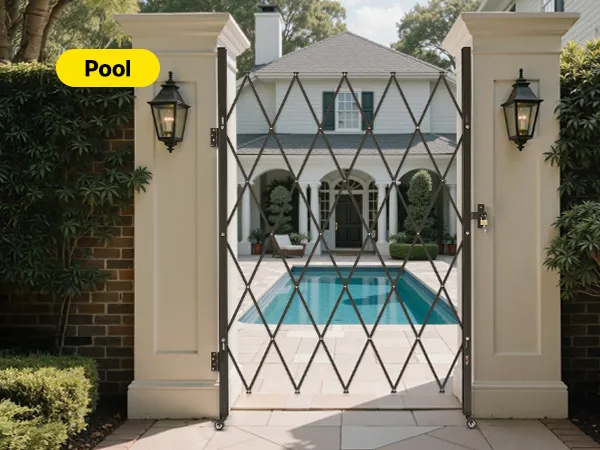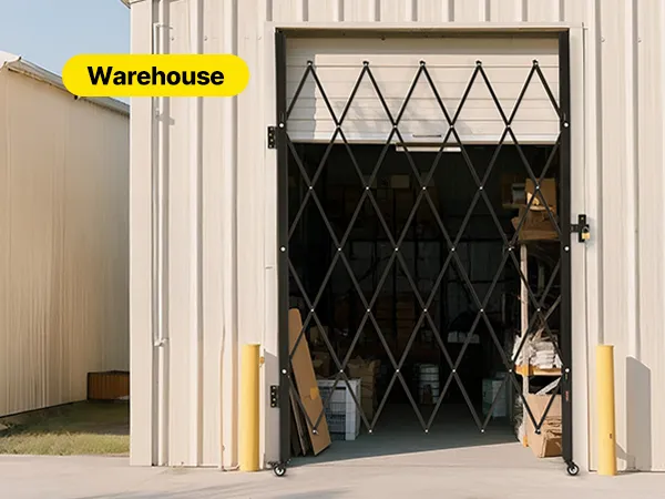 Wide Application: This folding security gate is widely used in homes and industrial sites to close/lock areas while maintaining visibility and airflow. It adds security for basements, garages, storefronts, etc.