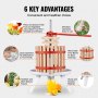 This is a long-lasting product. We built the VEVOR fruit wine press to last. The VEVOR fruit winch press features incredibly strong construction, so it won't break easily even with frequent use. High-quality materials like steel covered in enamel add to its durability, too. You can confidently use this press for years, extracting maximum juice each time. A solid wood basket complements its robust build. This ensures the juice-making process is smooth and efficient. Also, the press maintains its effectiveness because it provides consistent results season after season. Our high-grade build minimizes wear and tear, making it an ideal investment for any home gardener or small orchard owner. This durability translates to long-term savings, as there's no need for frequent replacements.