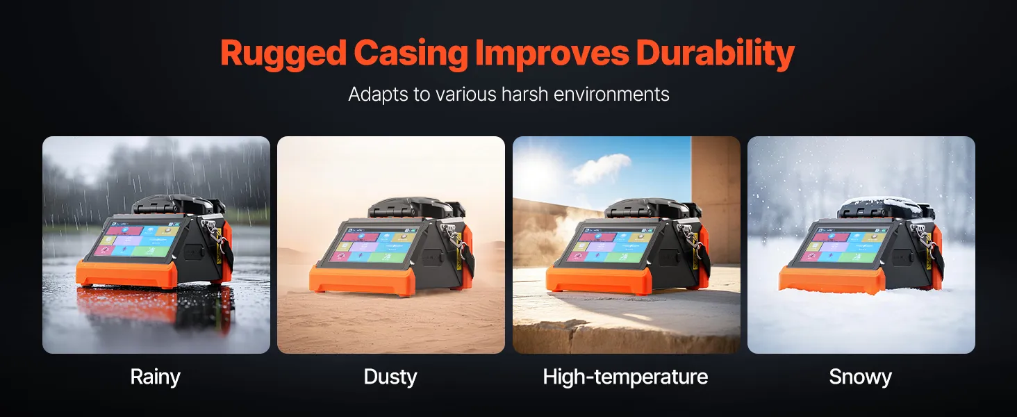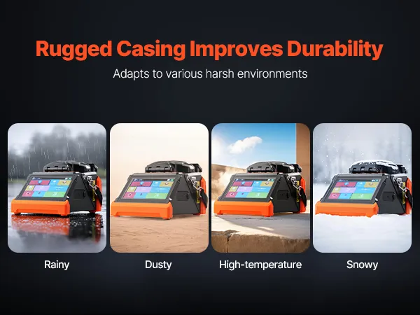 Forlenget driftstid: Et oppladbart batteri med høy kapasitet på 7800 mAh gir opptil 260 kontinuerlige fusjonsskjøtinger og oppvarmingssykluser på full lading, noe som reduserer behovet for hyppig lading. Den er bygget med slitesterke, men lette materialer, og er kompakt, støvtett og støtsikker, noe som gjør den ideell for ulike arbeidsmiljøer.