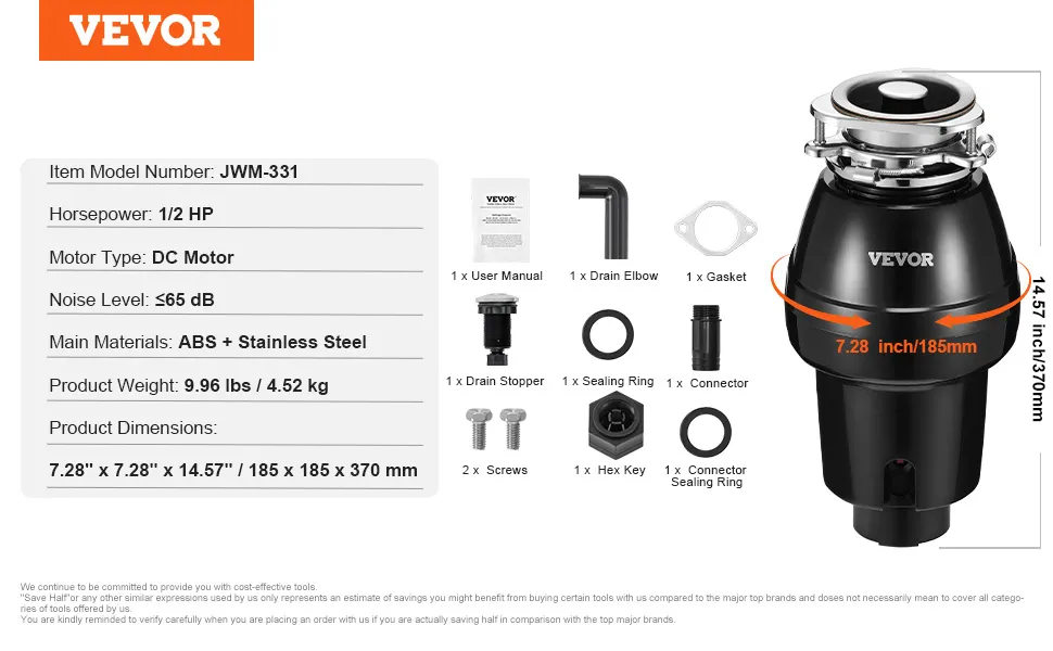 Say goodbye to waste buildup and unpleasant smells! Equipped with a powerful 1/2HP DC motor running at 3820 RPM, this continuous feed food waste disposer effortlessly handles tough scraps, keeping your kitchen clean and odor-free. Enjoy a hassle-free, fast, and efficient waste disposal solution.
