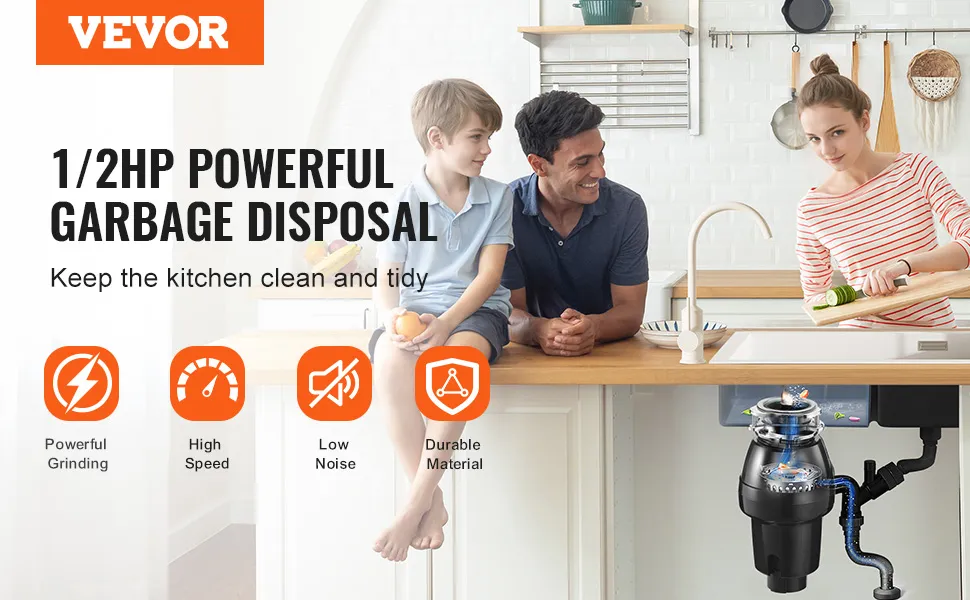 Durable and Long-Lasting: Built with waterproof, corrosion-resistant ABS shell and a stainless steel grinding system, this kitchen disposal provides reliable performance even in humid conditions.