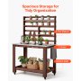 VEVOR Potting Bench Table, Outdoor Gardening Workstation with 115 x 66 x 169.5 cm Stainless Steel Tabletop, Storage Shelves, 4 Casters, Hooks, Garden Planting Work Station for Outside Patio, Backyard, Brown