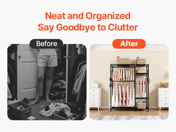 Adjustable Shelves: The height-adjustable shelves allow you to customize the storage space to fit different clothing and items. Whether it’s long coats, short jackets, folded sweaters, or accessories, you can reposition shelves to suit your storage needs