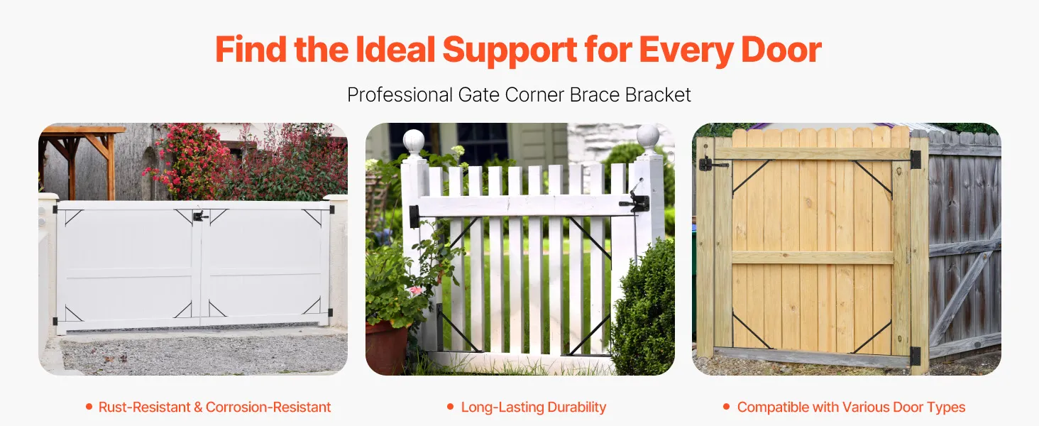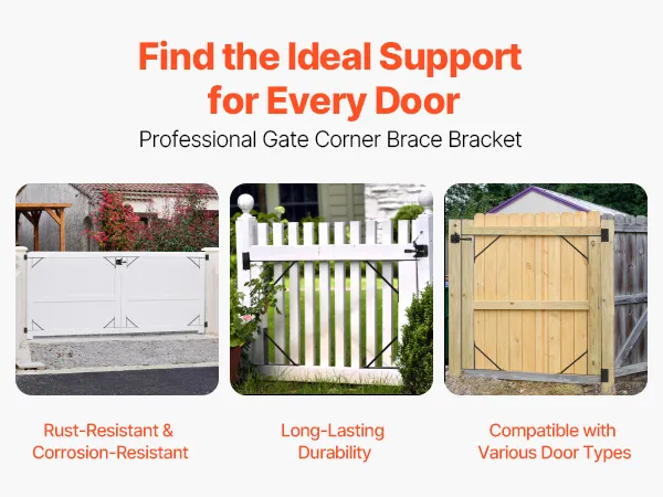 Tato kovová železná rohová výztuha brány zabraňuje prohýbání a stárnutí a je kompatibilní s 99 % typů dveří na trhu. Je odolná vůči korozi a rzi, povětrnostním vlivům, silnému dešti, sněhu a extrémním podmínkám, což zajišťuje dlouhodobé venkovní použití pro dveře všech typů a velikostí.