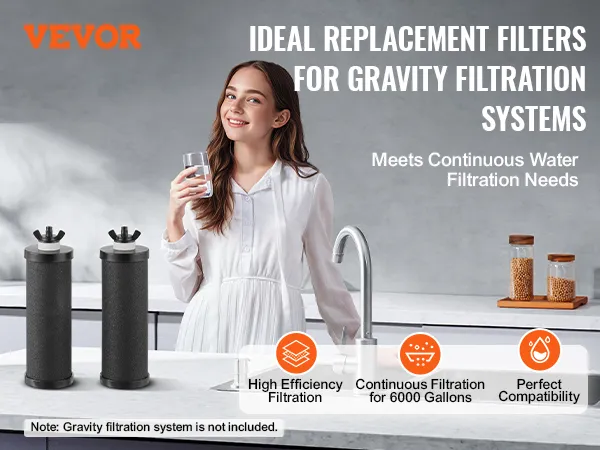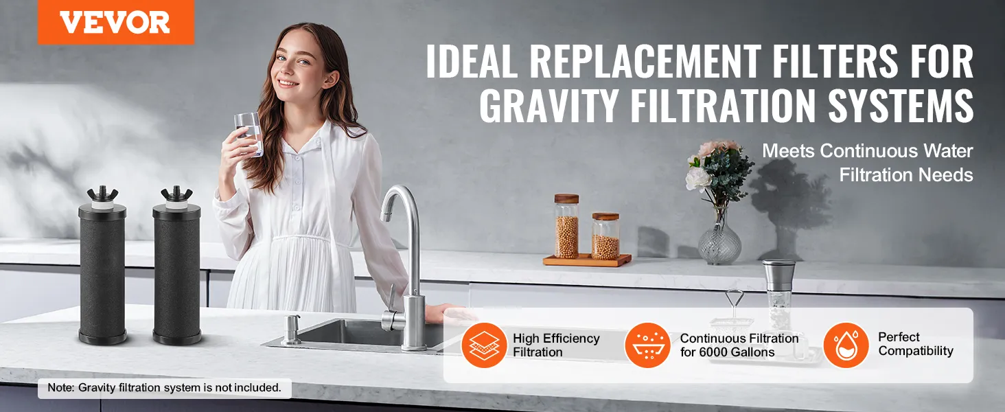 Înlocuitor de filtre de apă VEVOR, elemente de purificare, filtre de înlocuire cu carbon activ, filtru de apă ușor de înlocuit, sistem de filtrare a apei prin gravitație, compatibil cu majoritatea mărcilor, pachet de 2, negru