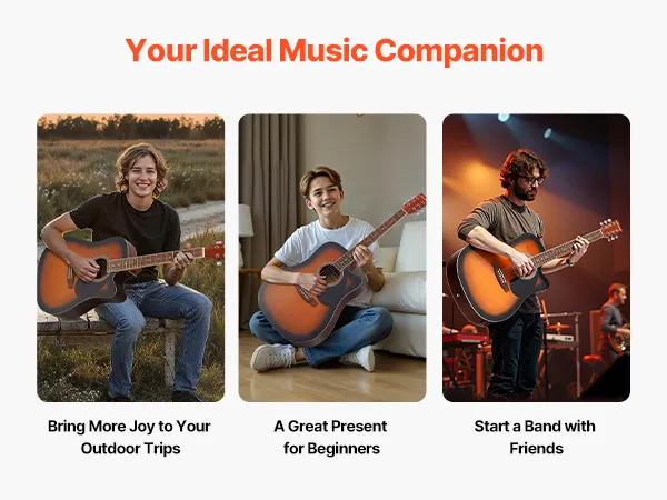 • Full Set of Accessories: The great choice for guitar beginners! This acoustic guitar bundle includes everything you need to get started. Unbox and begin your guitar journey right away with all the essentials at hand