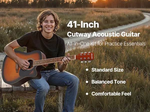 • 41-Inch Cutway Guitar: Designed for taller players, this acoustic guitar is great for fingerpicking, solos, jazz, and other expressive styles, ensuring versatility and enhanced playability