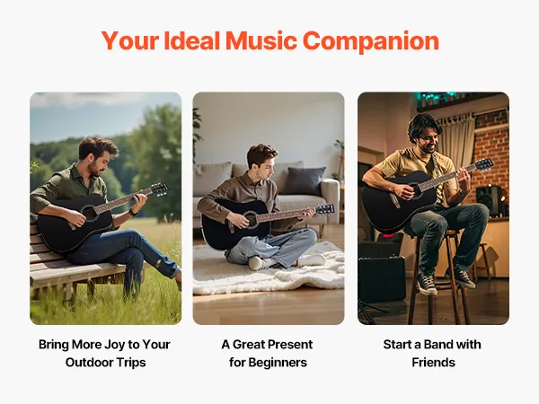 • Full Set of Accessories: The great choice for guitar beginners! This acoustic guitar bundle includes everything you need to get started. Unbox and begin your guitar journey right away with all the essentials at hand