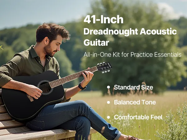 • 41-Inch Dreadnought Guitar: Ideal for taller players and those performing complex pieces, this acoustic guitar features an ergonomic design for enhanced comfort and ease during play