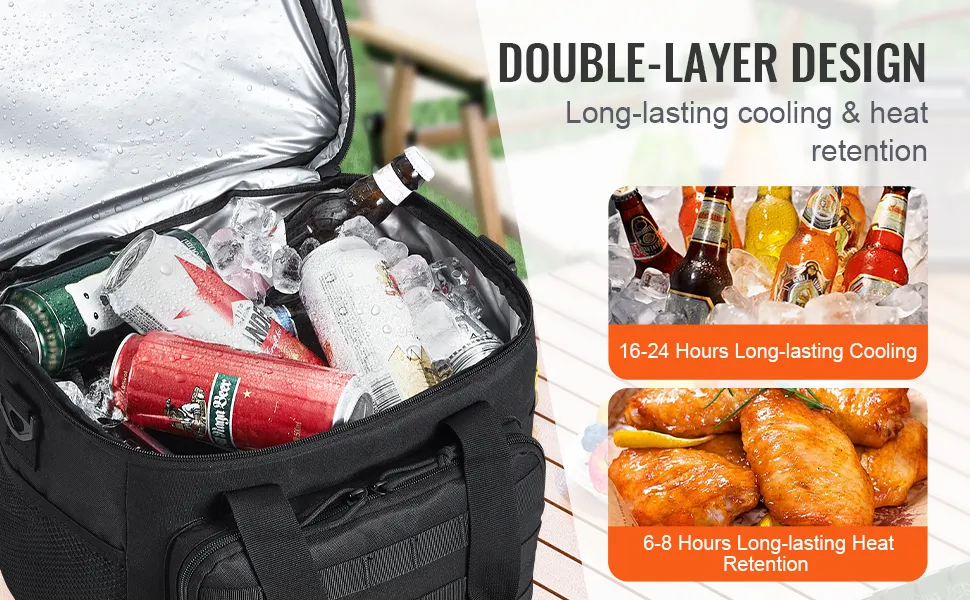 Outstanding Insulation: The insulated cooler bag is made from breathable, lightweight, waterproof polyester material, providing both comfort and convenience. It features excellent insulation, keeping items cold for 16-24 hours and warm for 6-8 hours, ensuring your drinks stay chilled and your food fresh. The main compartment utilizes an aluminum foil lining and seamless heat-pressing technology to ensure 100% waterproof and leak-proof performance.