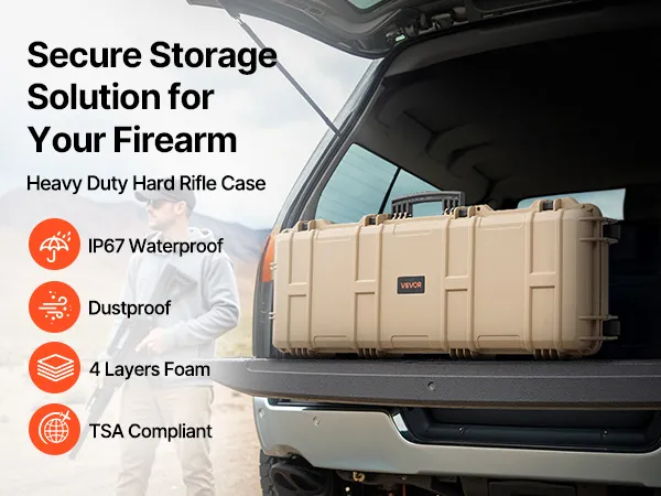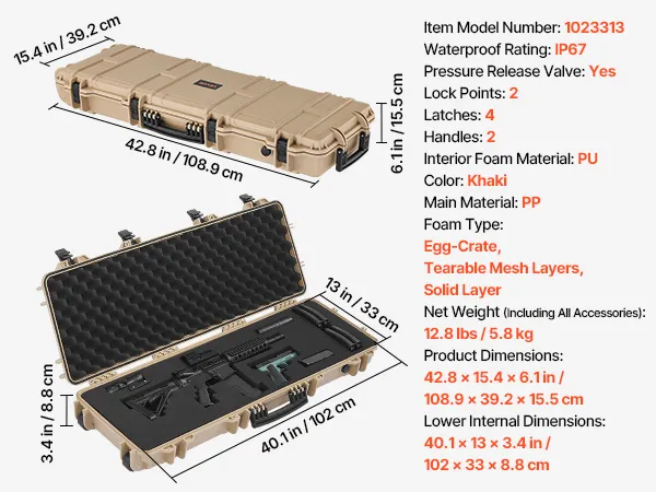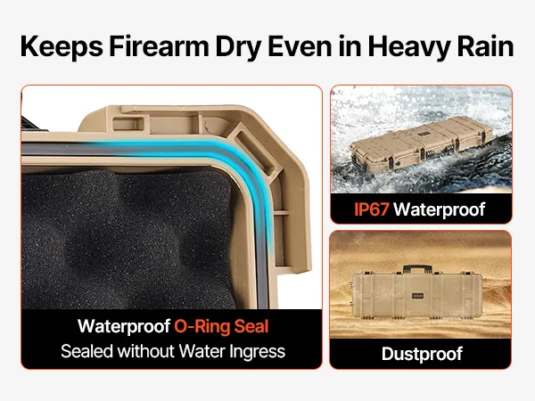 IP67 Waterproof & Dustproof: This hard rifle case features a rugged, impact-resistant exterior with IP67 waterproof and dustproof protection, ensuring a fully sealed design that keeps water out. It safeguards your firearms against harsh weather conditions
