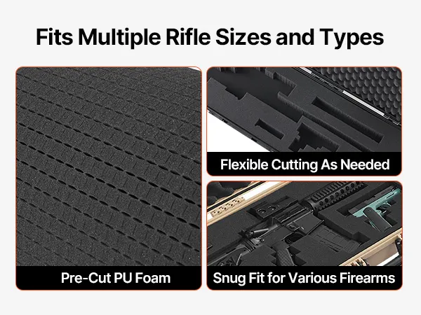 4-Layer Foam: Our gun case features 4 layers of soft foam:1 layer of egg-crate foam for shock absorption; 2 layers of pre-cut foam for a snug fit; 1 layer of solid foam for extra support. You can customize compartments tailored to the shapes of your rifle