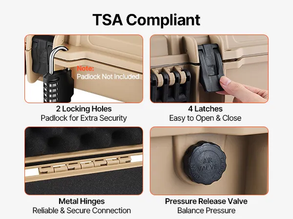 TSA Compliant: Meet TSA standards, this rifle case is suitable for travel on airplanes, trains, and other transport. Equipped with multiple latches, you can also add padlocks to the built-in lock holes for extra security (Note: padlocks not included)