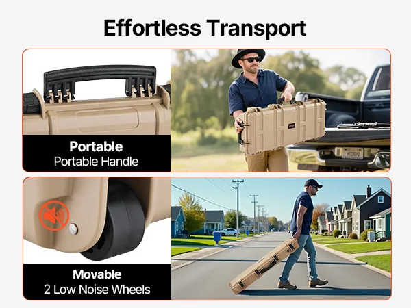 Portable & Easy to Move: Equipped with two silent wheels, this hard gun case can be effortlessly transported in public spaces, minimizing disruption. Multiple ergonomic handles make lifting and carrying simple, offering maximum flexibility and convenience