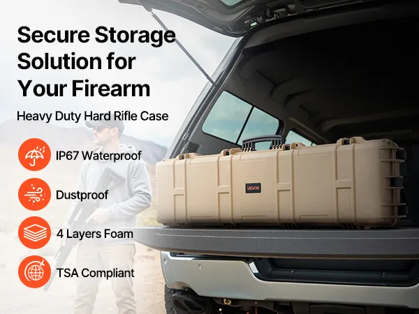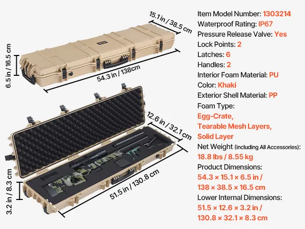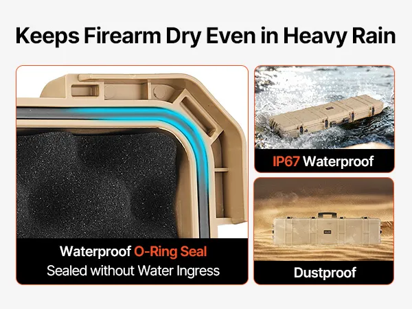 IP67 Waterproof & Dustproof: This hard rifle case features a rugged, impact-resistant exterior with IP67 waterproof and dustproof protection, ensuring a fully sealed design that keeps water out. It safeguards your firearms against harsh weather conditions