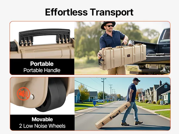 Portable & Easy to Move: Equipped with two silent wheels, this hard gun case can be effortlessly transported in public spaces, minimizing disruption. Multiple ergonomic handles make lifting and carrying simple, offering maximum flexibility and convenience