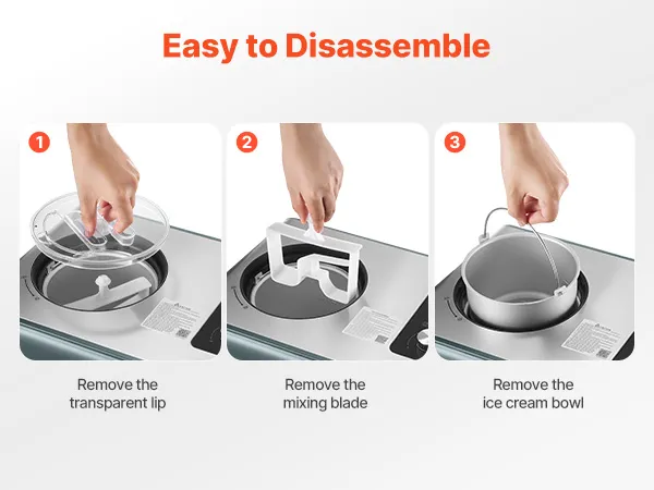 Easy to Disassemble & Clean: This home ice cream maker features removable food-contact parts for quick and easy cleaning. It supports both hand and machine washing, saving you time and effort