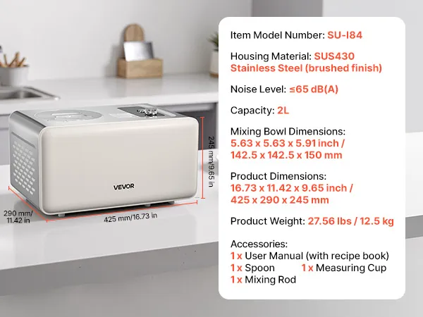 Large Capacity & Powerful Motor: Featuring a 2-quart capacity and a robust 150W motor, this compressor ice cream maker effortlessly produces enough ice cream for 1-3 people, ensuring quick and efficient performance every time