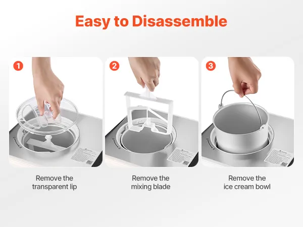 Easy to Disassemble & Clean: This home ice cream maker features removable food-contact parts for quick and easy cleaning. It supports both hand and machine washing, saving you time and effort