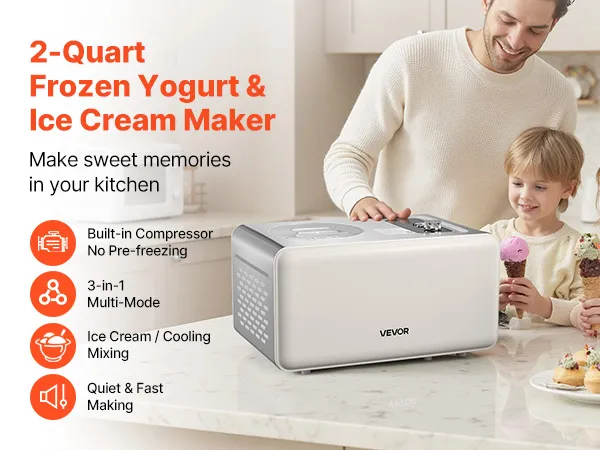 This 2-quart frozen yogurt & ice cream maker lets you effortlessly create sweet memories in your kitchen. With no pre-freezing required and four mode options to choose from, enjoy quick, silent ice cream making and delightful moments with your family.