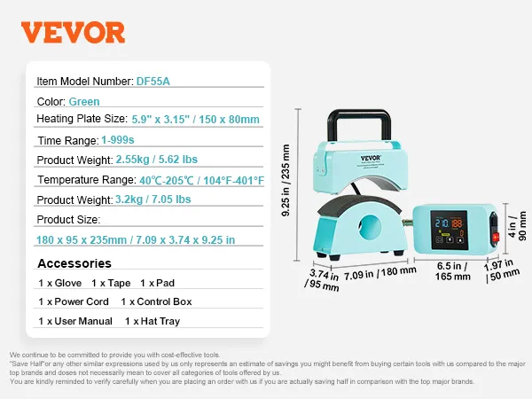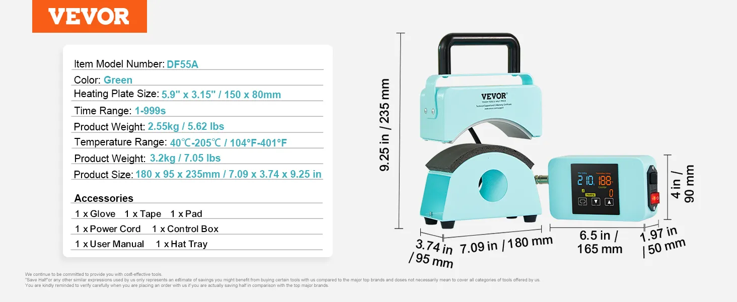VEVOR Hat Press Machine, Mini Hat Heat Press for Caps with Integrated Control Panel, Cap Heat Press Machine with 5.9x3.15 inch Curved Heating Plate, Safety Base, and Glove, Automatic Shut-Off, Green