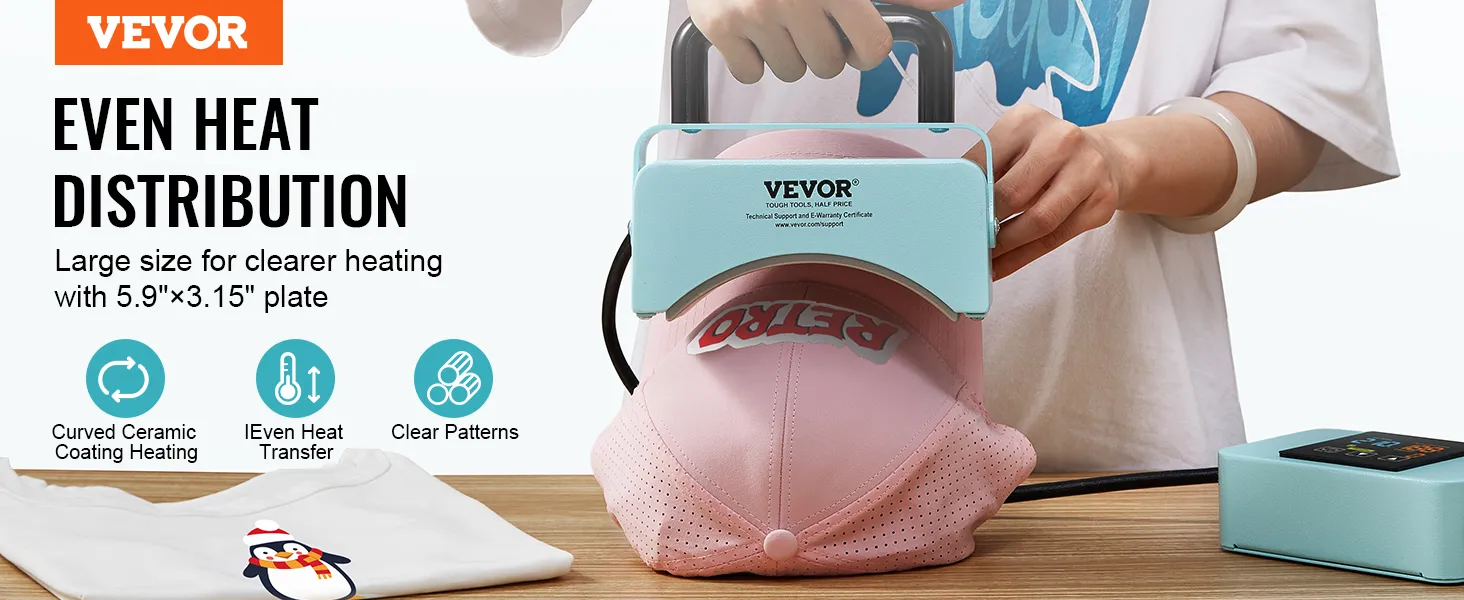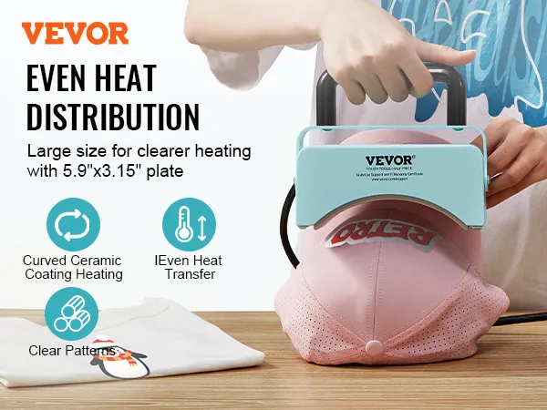 Precision Heat Transfer: This multifunctional portable hat press easily brings your DIY designs to life. With a 5.9" x 3.15" curved ceramic-coated heating element, it conforms to the shape of caps, ensuring even heat distribution and sharp, vivid transfers that expand your creative possibilities.