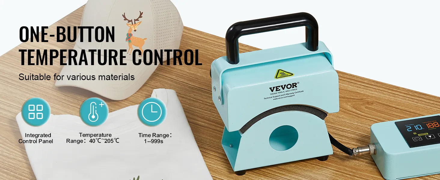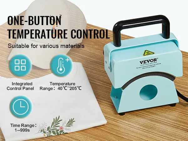Efficient and Convenient: The hat heat press features a wide temperature range from 40°C to 205°C, catering to different material needs. Whether at low or high temperatures, achieve precise printing results with ease.