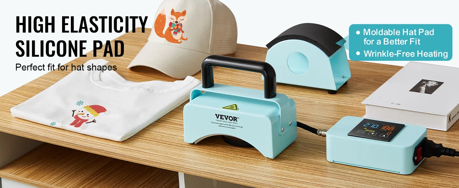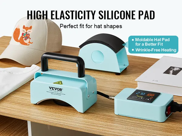 A high-elasticity silicone pad press ensures no creases during heating. Our hat cap heat press is flexible to fit different shapes and sizes, maintaining the cap's original appearance and quality.