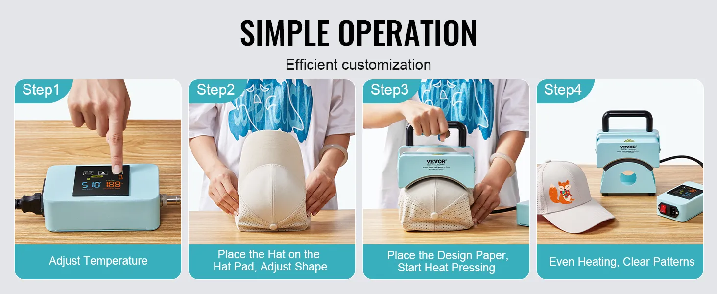 Portable and Easy to Use: The heat press hat machine's lightweight and portable design allows you to accomplish diverse, personalized printing tasks at different venues easily. Simple to operate with strong adaptability to various locations.