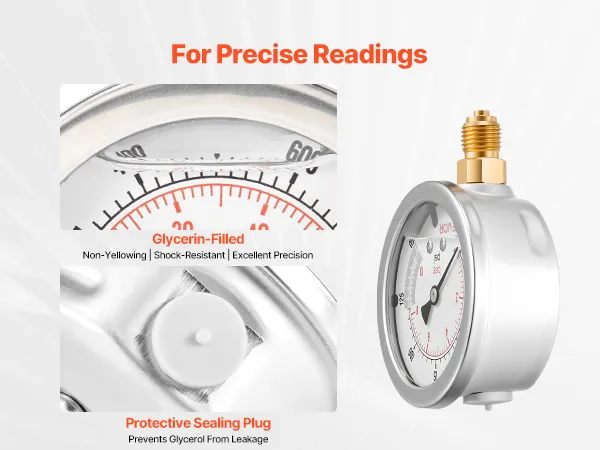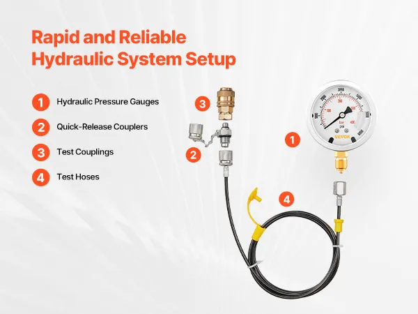 Reliable Accuracy: Our hydraulic gauge kit features glycerin-filled gauges that resist leakage, avoid yellowing, reduce internal friction, and dampen vibration. 304 stainless steel housing ensures strength, heat, and corrosion resistance