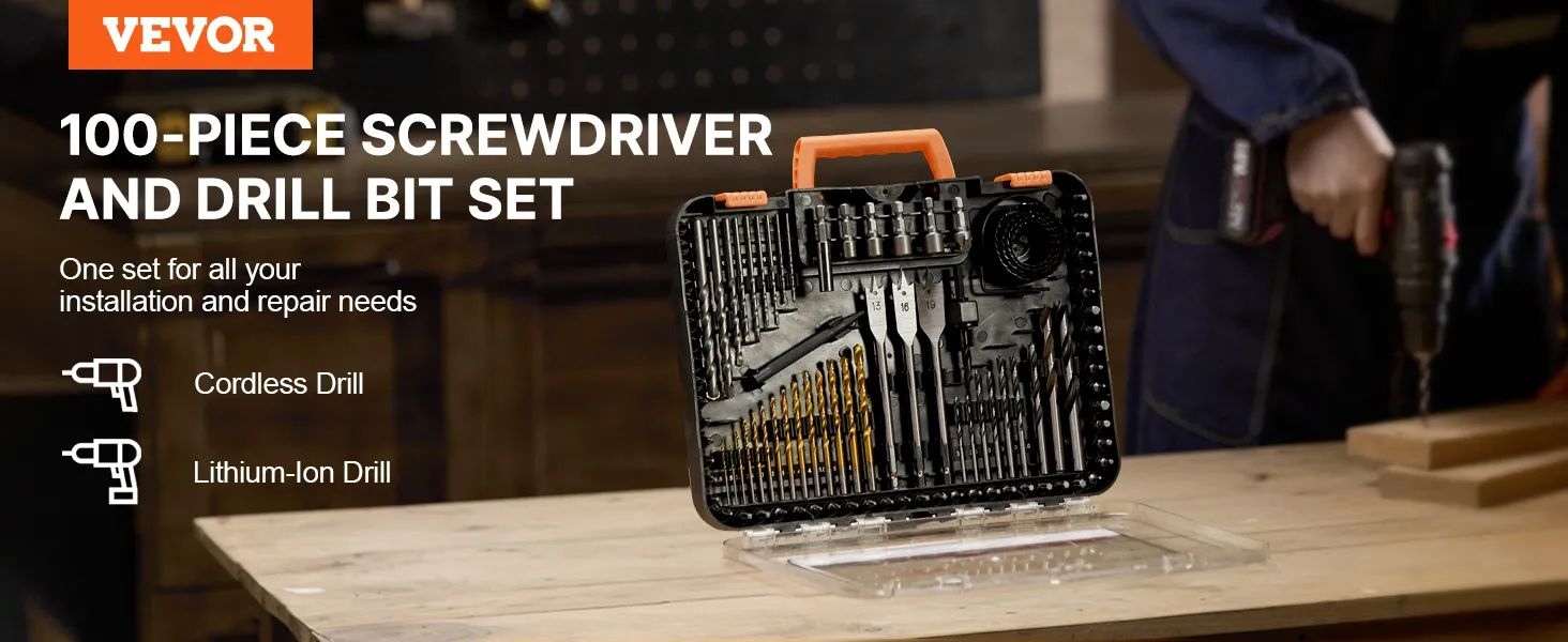 Sada šroubováků a vrtáků VEVOR, 100 kusů, efektivní a kompletní