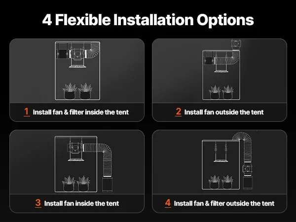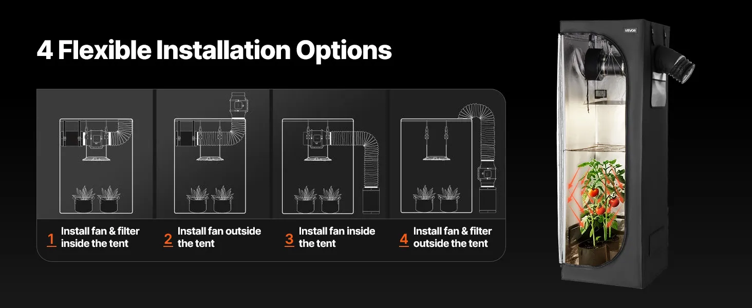 Whether optimizing airflow or saving space, our grow tents for indoor plants support various fan and filter layouts, offering flexibility to meet different planting requirements.