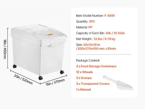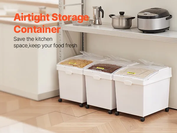 Monikäyttöinen säilytysrasia: Valmistaudu säilyttämään erilaisia tavaroita, kuten koiranruokaa, pellettejä, siemeniä, välipaloja, jauhoja, riisiä, pähkinöitä, palkokasveja, jyviä, sokeria ja paljon muuta. Se on riittävän monipuolinen säilyttämään ihmisten ruokaa, toimistotarvikkeita, leluja ja muita tavaroita.