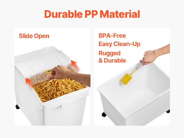 Elintarvikelaatuinen PP-materiaali: Tämä koiranruokasäilö on valmistettu BPA-vapaasta, myrkyttömästä ja elintarvikelaatuisesta PP-materiaalista, joten se on paitsi kestävä myös turvallinen lemmikkien ja ihmisten ruoan säilyttämiseen. Se on myös helppo puhdistaa.