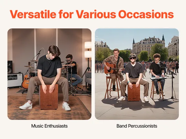 Punchy Birch, Clear Sound: Made with premium birch, this cajon box drum reacts precisely to every touch. Enjoy warm, booming bass tones and snappy, clear highs for a natural, responsive feel that brings each beat to life