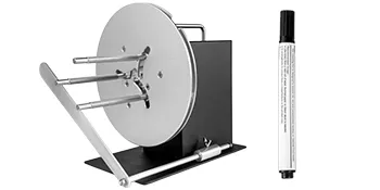 The labelmate rewinder can rewind or unwind in the clockwise or anticlockwise directions. You can adjust the rewinding speed or choose to synchronize the speed with the printer. It can stop automatically after the printer stops.