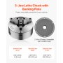 VEVOR 3-käfts svarvchuck, 8 tum (200 mm), självcentrerande chuck med 2 1/4 tum-8 gängad stödplatta, 0,16-7,87 tum (4-200 mm) spännområde med T-nyckelskruvar, HT300-material, för trä- och metallsvarv