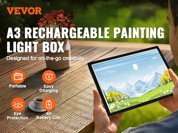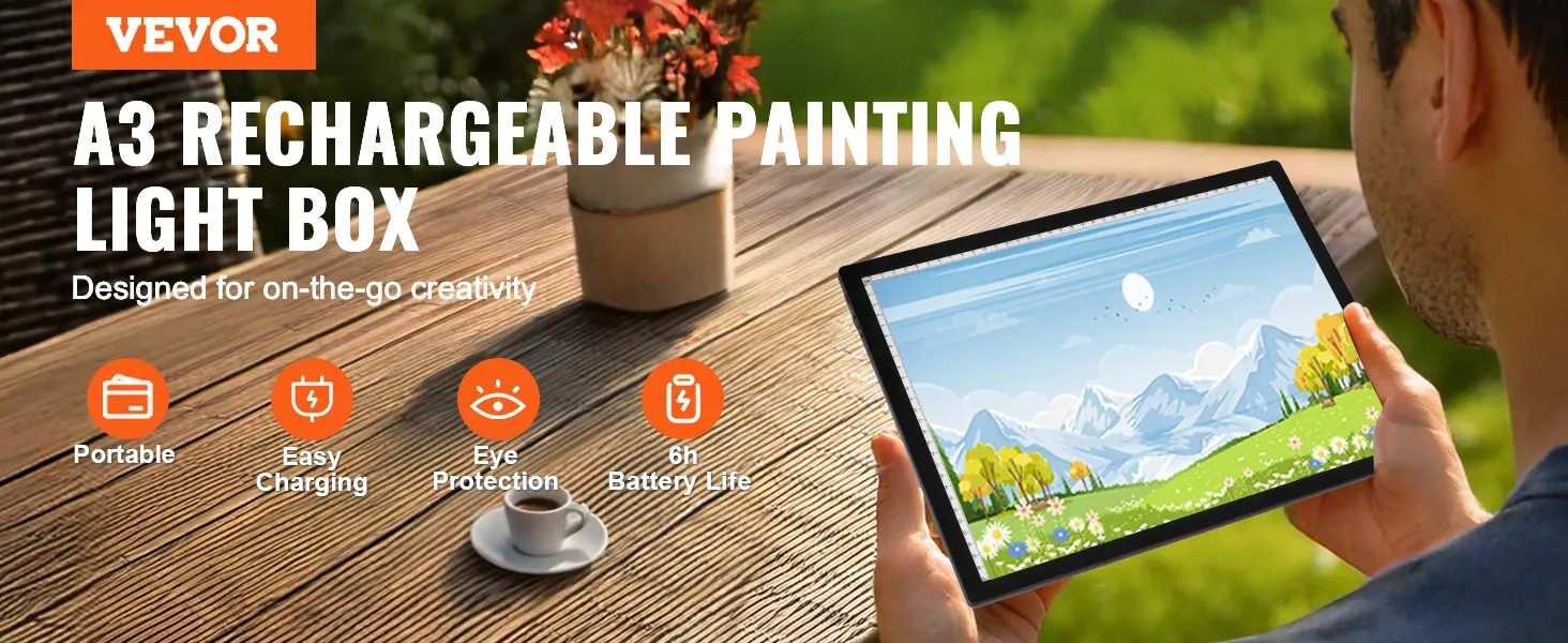 Dobíjecí malířský světelný box VEVOR A3 pro použití kdekoli a kdykoli