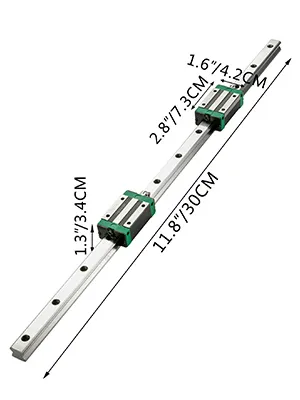 This linear guideway rail is of 2 pieces of 300mm/11.8" long HGR20 rail shafts, 4 blocks, and a ballscrew kit. High-quality steel material extends the service life of the shaft, and the machine. Move smoothly without deflection, minimal wear and low noise.