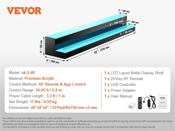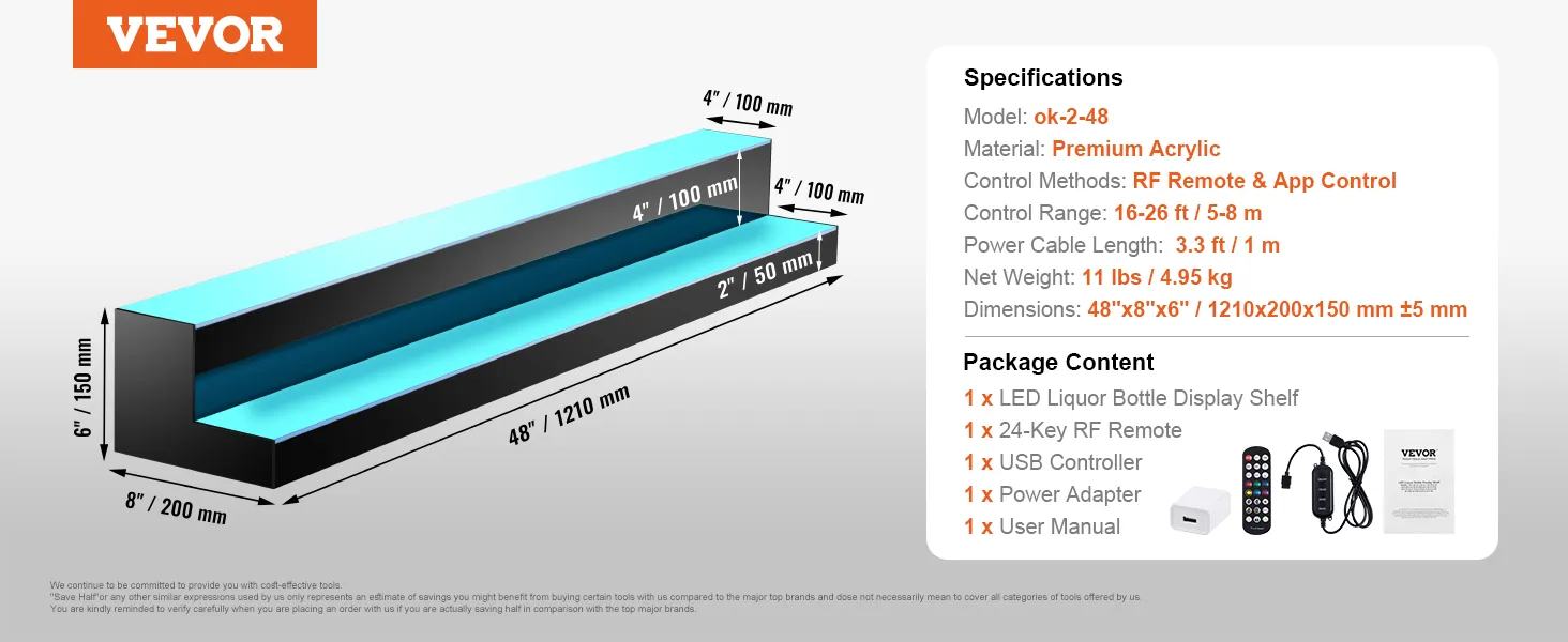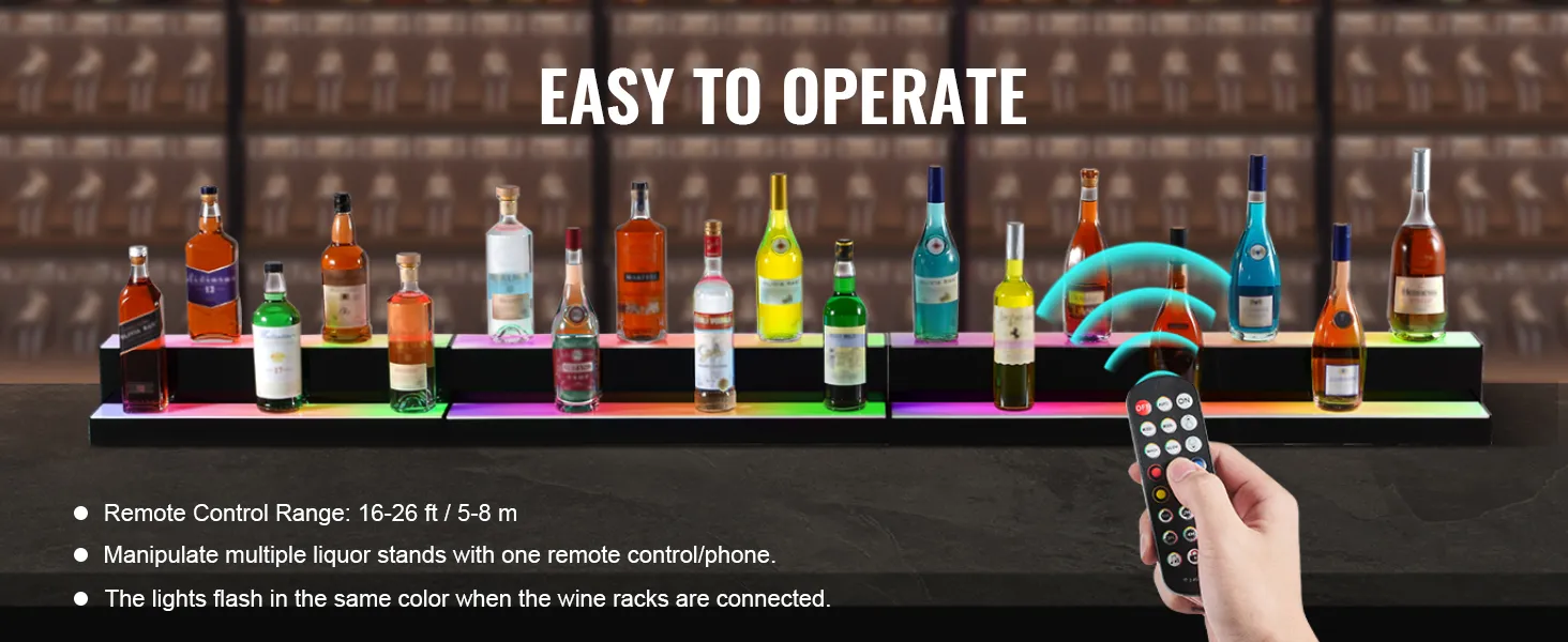 Control Freely within 26Ft: Are you tired of confusing settings and adjustments? With our bar lights you are in control! Supported by RF remote and smart app control, you can adjust effects as you like, including 7 static colors, 22 dynamic colors, multiple DIY modes, music modes, and 1-4h timing. Moreover, multiple bar shelves can be simultaneously controlled under a single remote control.