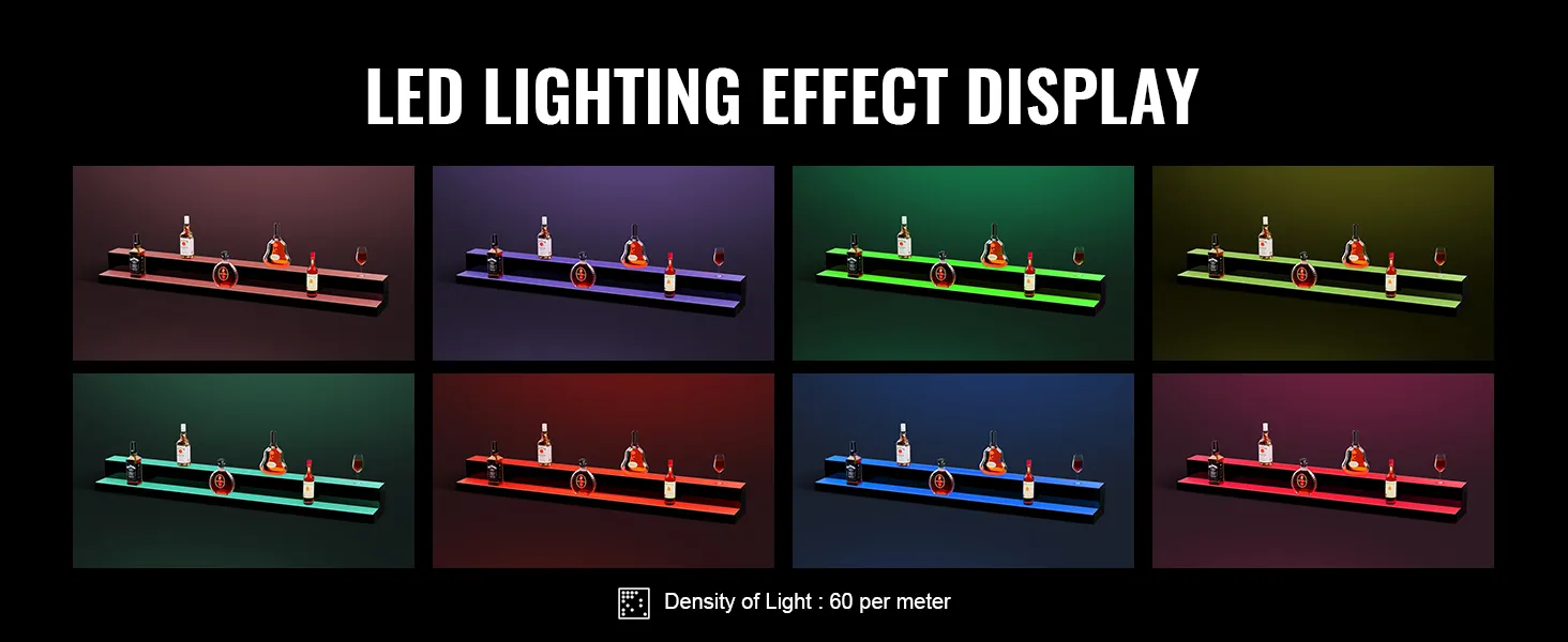 • Spotlight your Bar: Prepare to be dazzled by an upgraded LED light effect and leave your guest speechless. 60 lamp beads per meter is sure to create a night to remember. Given the superb lighting performance, it is no surprise that our led lighted bar shelf display can create a brighter ambiance for any bar.