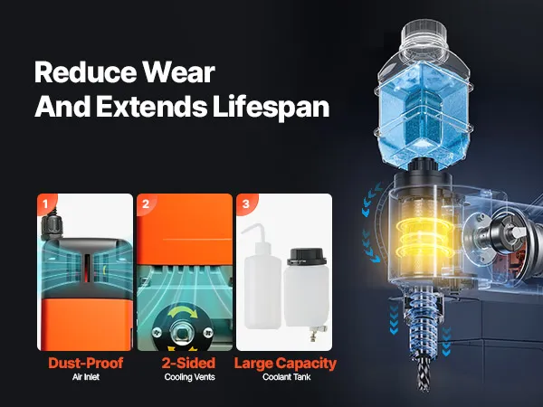 The magnet drill press features an internal circulation cooling system that keeps the drill bit cool during operation. This helps extend the bit lifespan and minimizes wear while ensuring smooth drilling.