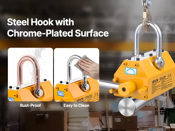 Chrome-Plated Hook: The heavy-duty hook of the magnetic lifter withstands bending or breaking. Its chrome finish boosts rust resistance and makes cleanup easier. A pair of protective gloves is included