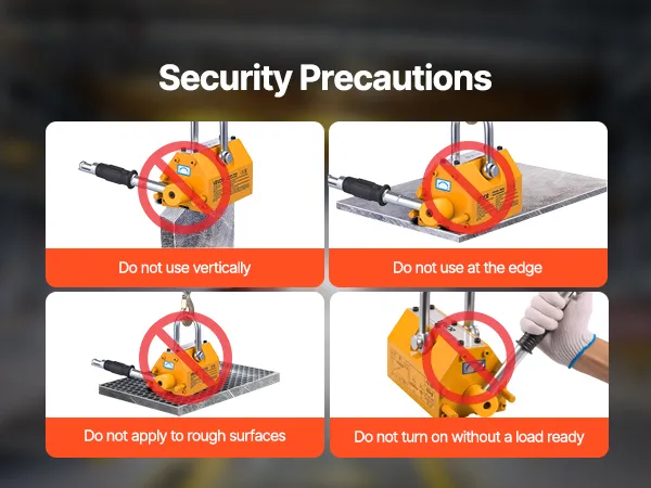Our lift magnets feature easy one-handed operation. Switches magnetic force without electricity—turn left to activate strong magnetism, turn right to release.
