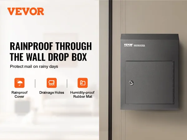 Design à prova de chuva: Nossa caixa de depósito de chaves através da porta apresenta um design de segurança à prova de chuva com uma grande proteção colocada na frente do slot de entrega, garantindo a segurança de correspondências importantes mesmo durante chuvas fortes. O fundo da caixa é equipado com almofadas de borracha e furos de drenagem para remover rapidamente a água acumulada, evitando que a correspondência fique molhada.