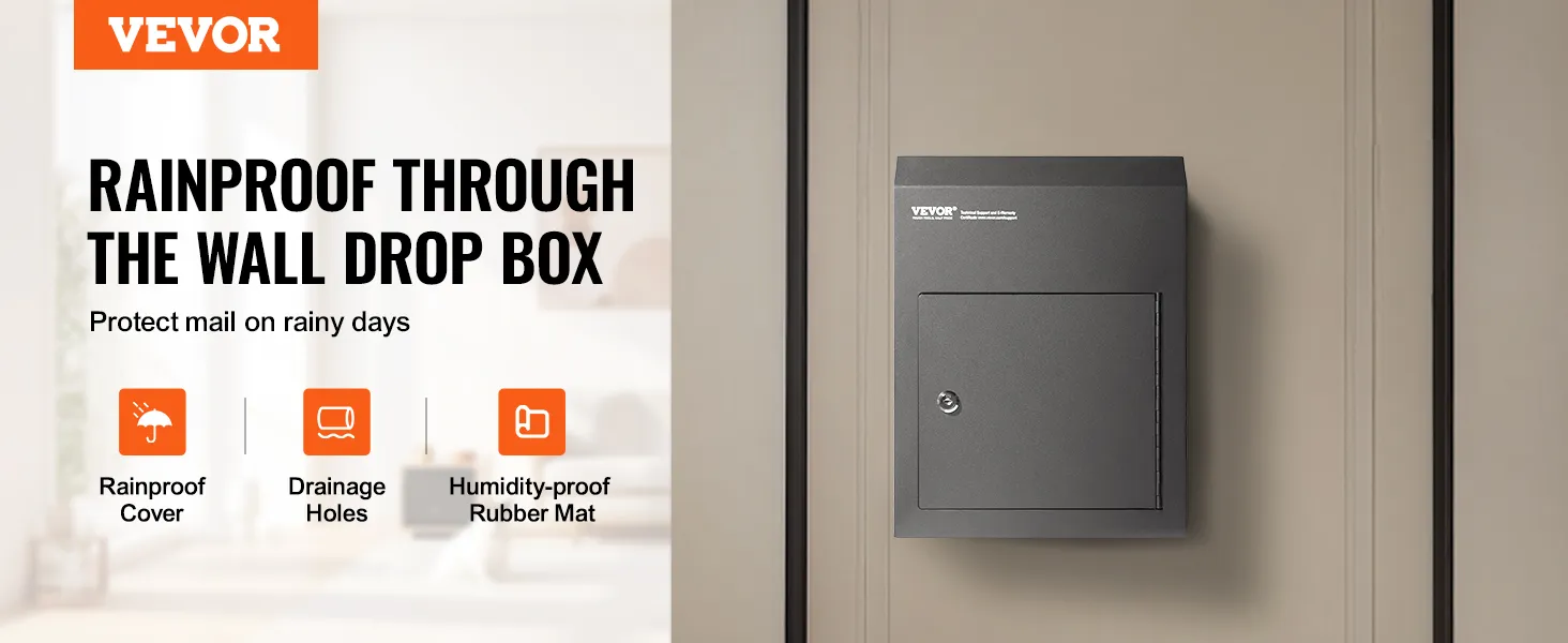 Grande caixa de armazenamento e slot: A caixa de depósito através da porta inclui uma caixa de armazenamento de 12×6×16 polegadas, fornecendo 0,51 pés cúbicos de espaço, capaz de acomodar vários tamanhos de itens. O slot grande de 9,8×1,8 polegadas é adequado para smartphones, envelopes, pequenos pacotes e chaves.